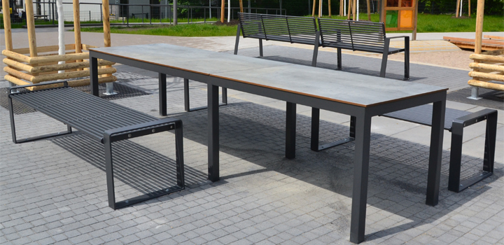 dazu Tische mit HPL- Platten